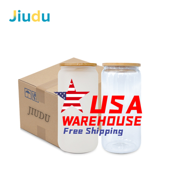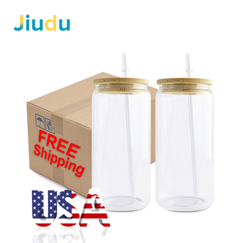 Sublimação De Vidro Pode Vidro EUA Armazém Claro ou Fosco Café Gelado Sublimação Em Branco Cerveja De Vidro Pode Tumbler Com Bambu